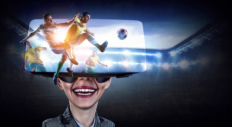 Le côté opposé à ces loges est couvert d’une bâche où sont diffusées des images de foules. Les premières années, les diffuseurs puisaient dans les images d’archives des grands matchs, mais bientôt les couleurs des maillots et les noms des franchises évoluant, il avait fallu se résoudre à produire de simples images de synthèse de fans. Des fonds sonores rappelant les ambiances survoltées des ultras accompagnent la diffusion des spectacles sportifs. Les matchs sont divisés en tiers-temps afin de maximiser les plages de publicité. Certains jeunes supporteurs adultes n’ont pas souvenir d’avoir vu leur équipe dans un stade et se moquent de la nostalgie de leurs parents évoquant les ambiances des stades d’antan. Comment regretter ce que l’on n’a pas connu ?